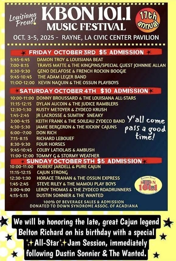 KBON has partnered with Down Syndrome Association of Acadiana to host another spectacular fan appreciation festival. This 3-day weekend event features over 20 local bands including Cajun, French, Swamp Pop, Country and Zydeco musicians. This highly anticipated event attracts thousands festival-goers each year. There’s a large dance floor and KBON does an awesome job choosing bands that keep you tapping your toes and singing along. If you enjoy great music and lots of dancing, this is the event for you!